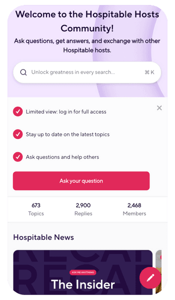 Join thousands of Hospitable hosts sharing proven strategies, solving challenges, and improving their hosting together.