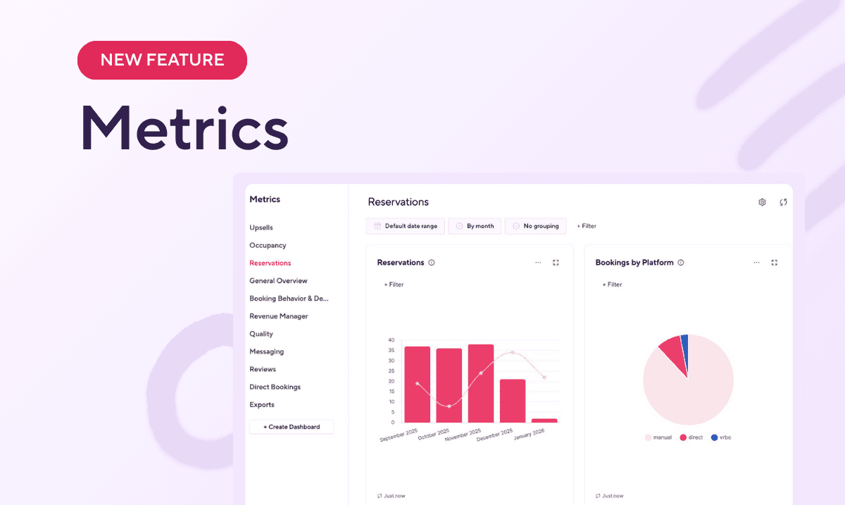 Reduce errors and avoid guesswork. Because Metrics is tied directly to your live booking, guest, and revenue data, you can make decisions with confidence, without relying on stale snapshots or manual reconciliation.